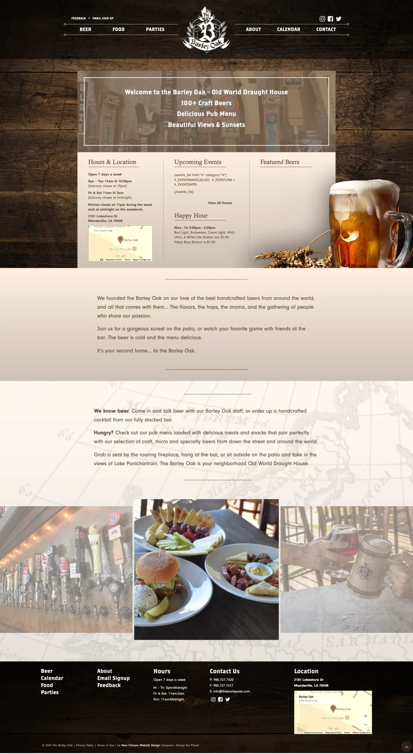 Come for the beer stay for the sunsets. We designed and developed a custom website for Barley Oak showcasing their unique food and beverages, event space and calendar, and more. This draught house on the Mandeville Lakefront caters to their neighbors, and needed an attractive site to keep their friends in the know. Cheers!